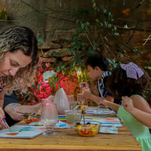 A experiência de arte com pintura em aquarela é aberta para todas pessoas, e será conduzida com por Gamba Martins, artista-educador. Nesta edição, com tema de inverno, você aprenderá técnicas básicas de aquarela e criará sua própria pintura inspirade na estação e nos sabores do dia. Ao final, cada participante poderá levar sua obra para casa.