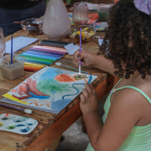 • Material artístico incluso (tintas, pincéis, papel especial) e exposição coletiva no fechamento.
