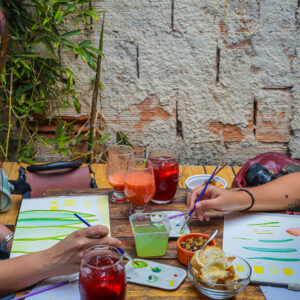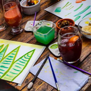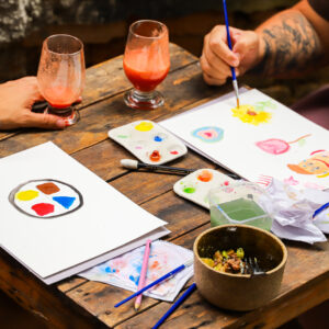 Uma experiência com arte, comidas e bebidas, para quem quer pintar, saborear e se reconectar com a criatividade.